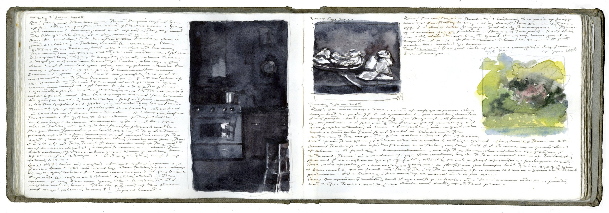 watercolor, graphite, and pen and ink on Arches paper in bound volume,